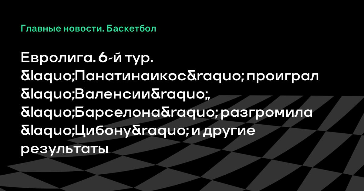 Евролига. 6-й тур. «Панатинаикос» проиграл «Валенсии», «Барселона» разгромила «Цибону» и другие результаты