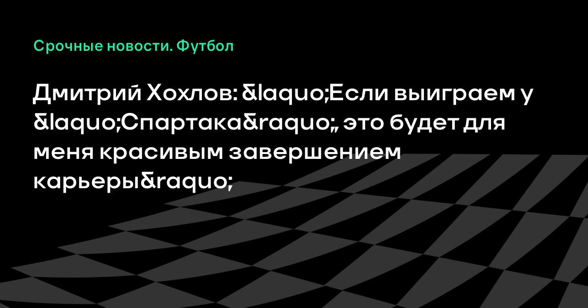 Дмитрий Хохлов: «Если выиграем у «Спартака», это будет для меня красивым завершением карьеры»