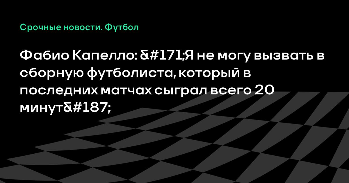 Фабио Капелло: «Я не могу вызвать в сборную футболиста, который в последних матчах сыграл всего 20 минут»