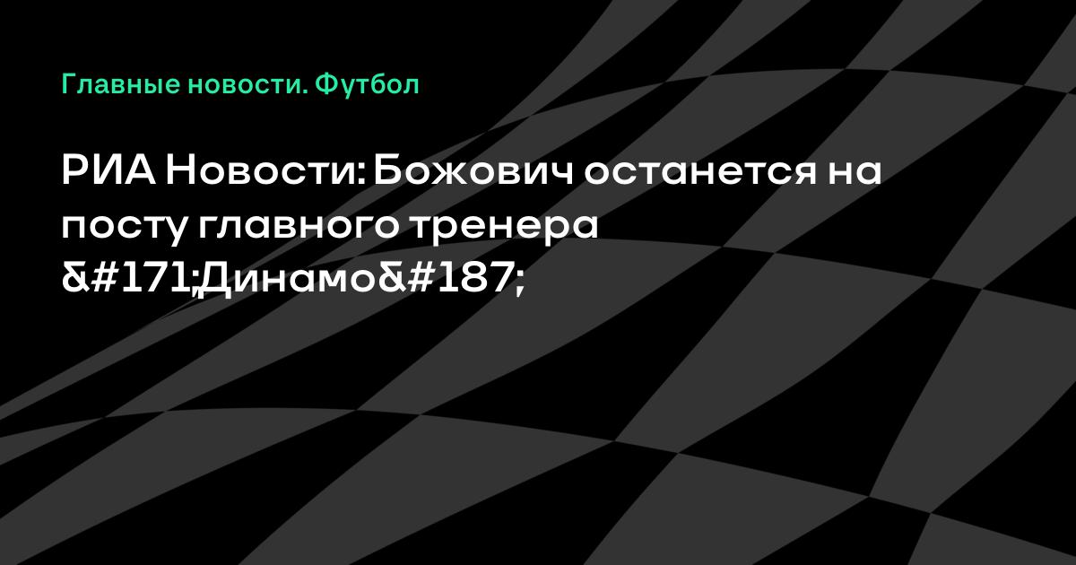РИА Новости: Божович останется на посту главного тренера «Динамо»