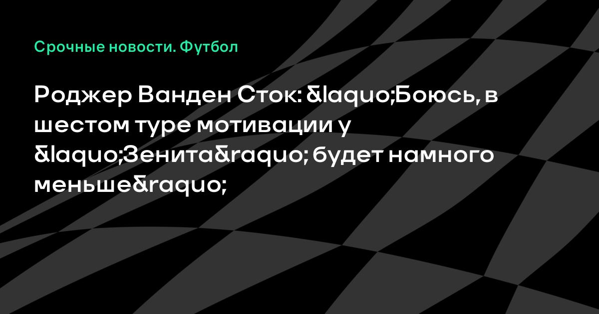 Роджер Ванден Сток: «Боюсь, в шестом туре мотивации у «Зенита» будет намного меньше»