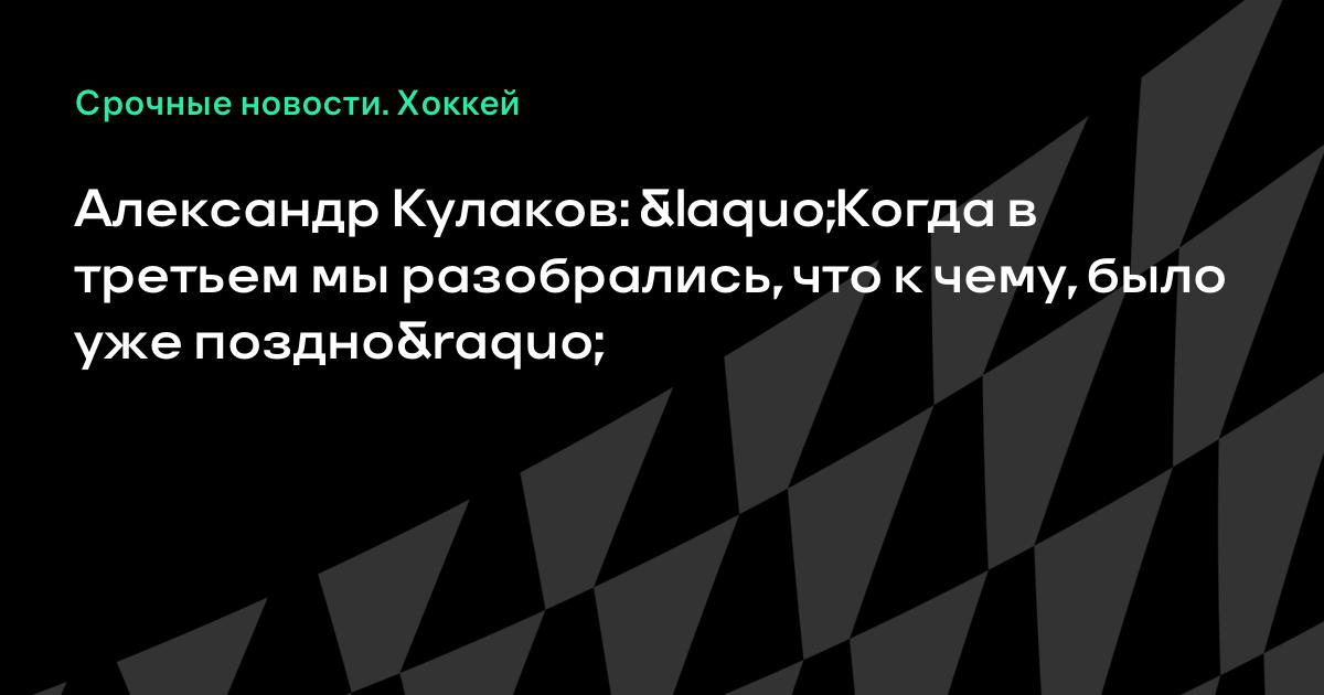 Александр Кулаков: «Когда в третьем мы разобрались, что к чему, было уже поздно»
