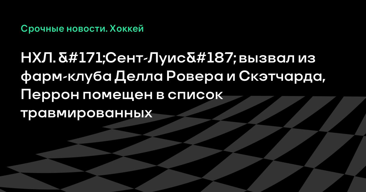 НХЛ. «Сент-Луис» вызвал из фарм-клуба Делла Ровера и Скэтчарда, Перрон помещен в список травмированных