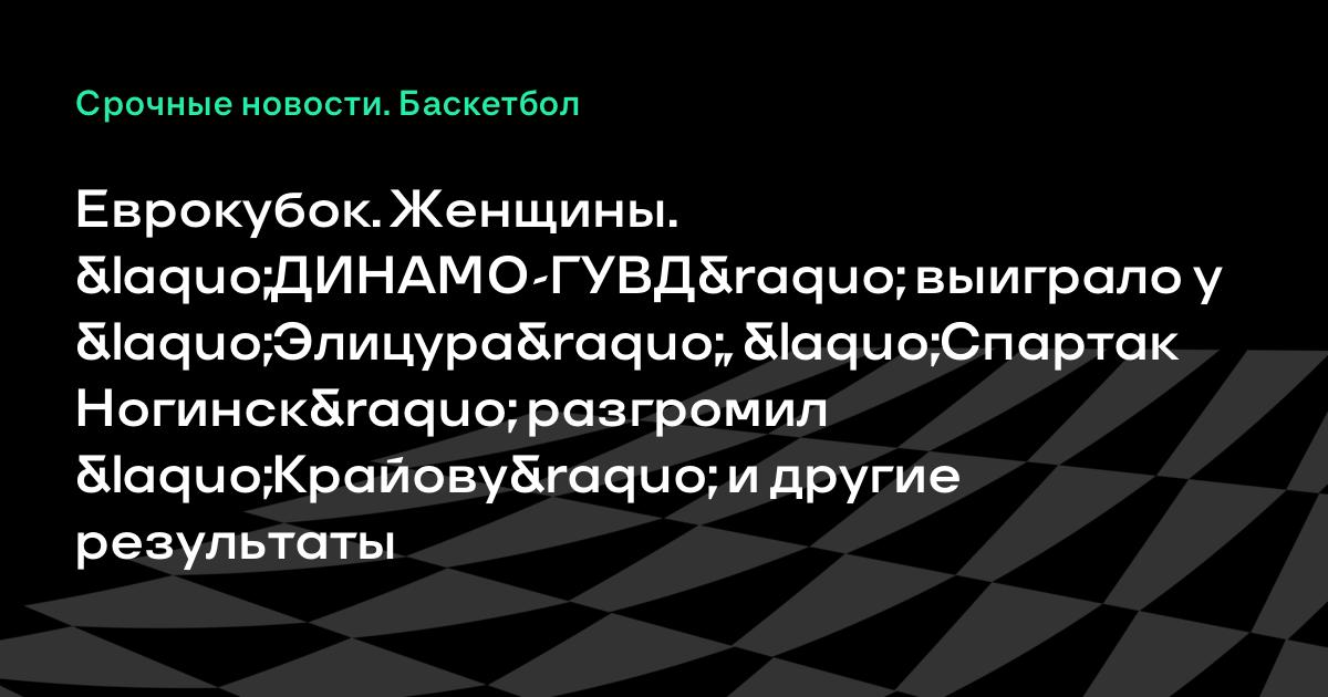Еврокубок. Женщины. «ДИНАМО-ГУВД» выиграло у «Элицура», «Спартак Ногинск» разгромил «Крайову» и другие результаты