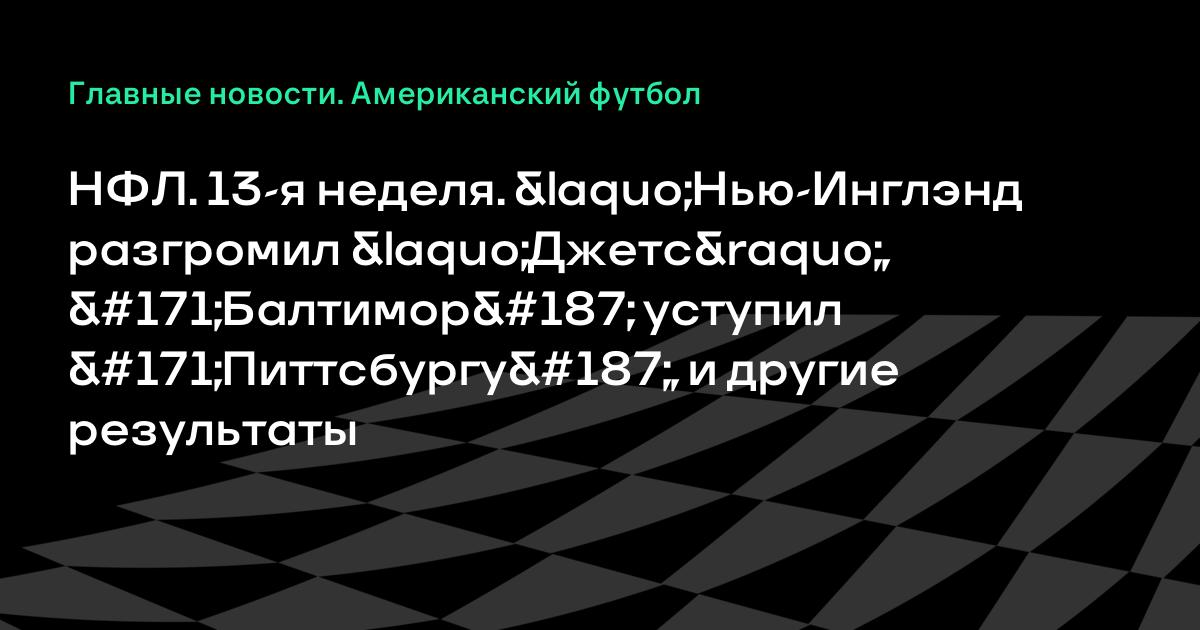 НФЛ. 13-я неделя. «Нью-Инглэнд разгромил «Джетс», «Балтимор» уступил «Питтсбургу», и другие результаты