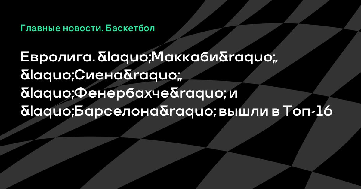 Евролига. «Маккаби», «Сиена», «Фенербахче» и «Барселона» вышли в Топ-16