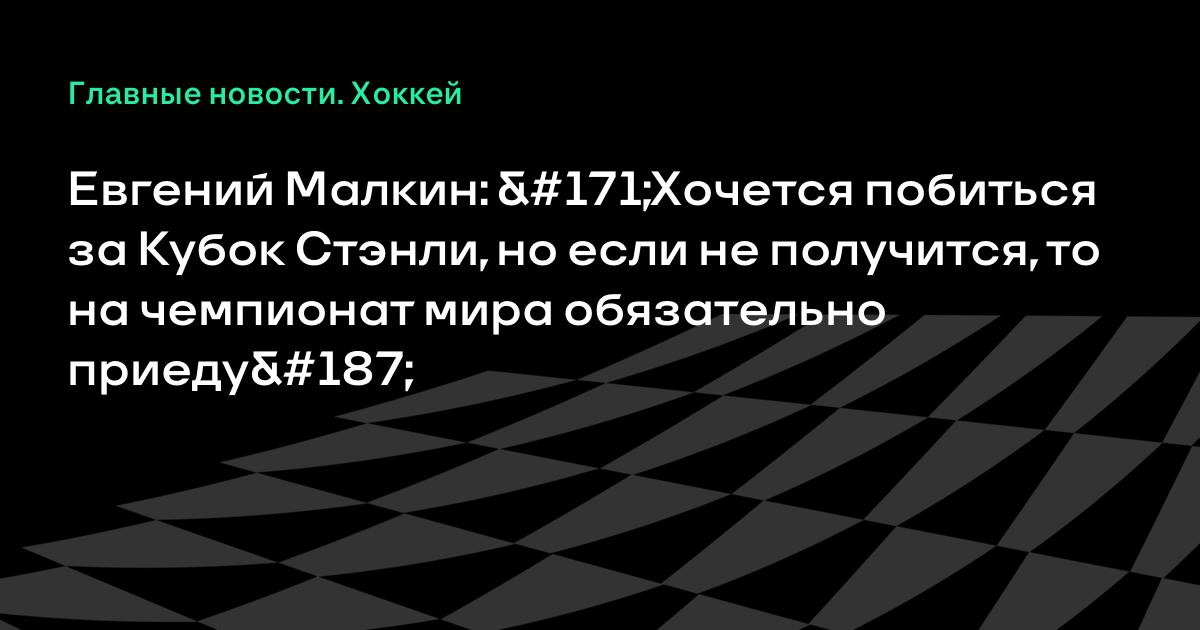 Евгений Малкин: «Хочется побиться за Кубок Стэнли, но если не получится, то на чемпионат мира обязательно приеду»