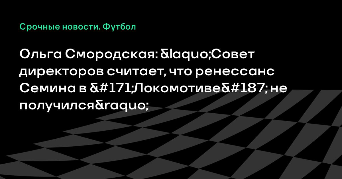 Совет директоров считает, что ренессанс Семина в «Локомотиве» не получился. Он не добился той игры и того результата, которых от него ждали», цитирует Смородскую официальный сайт «Локомотива» со ссылкой на еженедельник «Футбол».