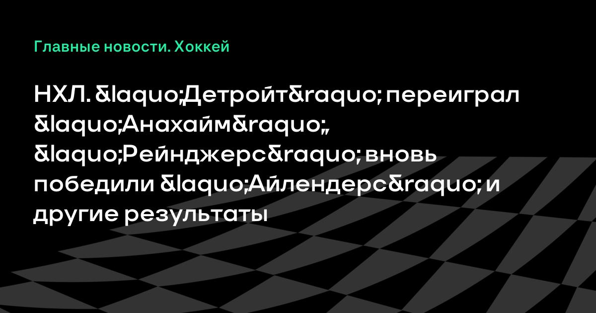 НХЛ. «Детройт» переиграл «Анахайм», «Рейнджерс» вновь победили «Айлендерс» и другие результаты