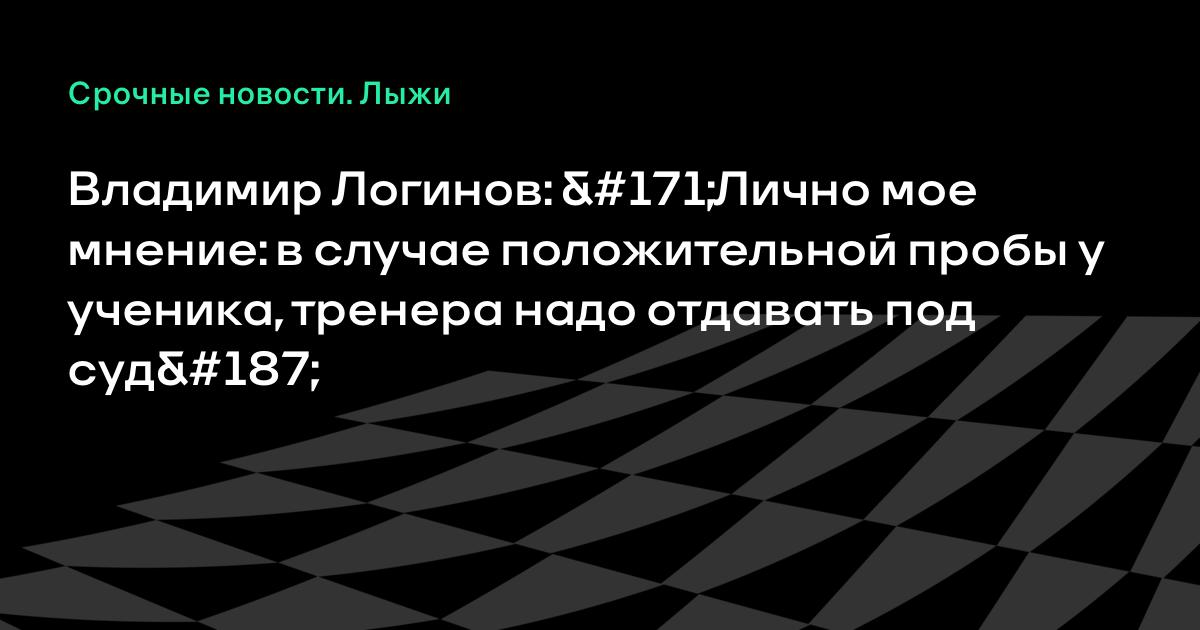 Владимир Логинов: «Лично мое мнение: в случае положительной пробы у ученика, тренера надо отдавать под суд»