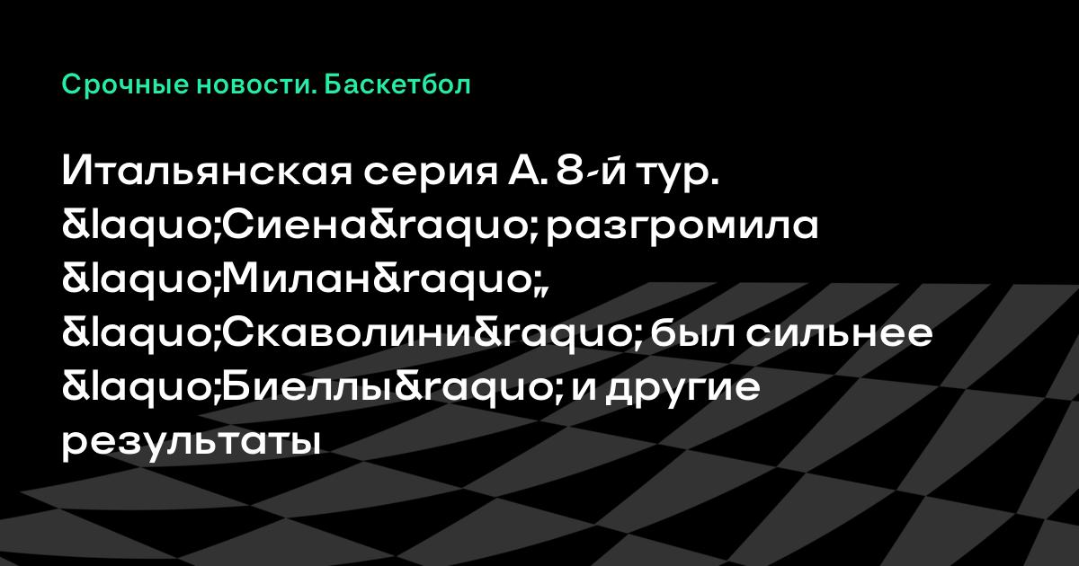 Итальянская серия А. 8-й тур. «Сиена» разгромила «Милан», «Скаволини» был сильнее «Биеллы» и другие результаты