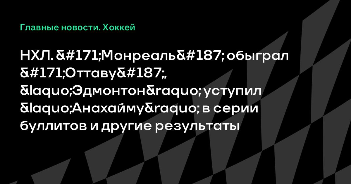 НХЛ. «Монреаль» обыграл «Оттаву», «Эдмонтон» уступил «Анахайму» в серии буллитов и другие результаты