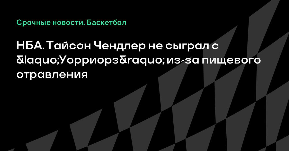 Центровой «Далласа» Тайсон Чендлер пропустил домашний матч с «Голден Стэйт» из-за пищевого отравления, информирует AP. Игрок остался дома во время утренней тренировки команды и не приехал на игру в American Airlines Center.