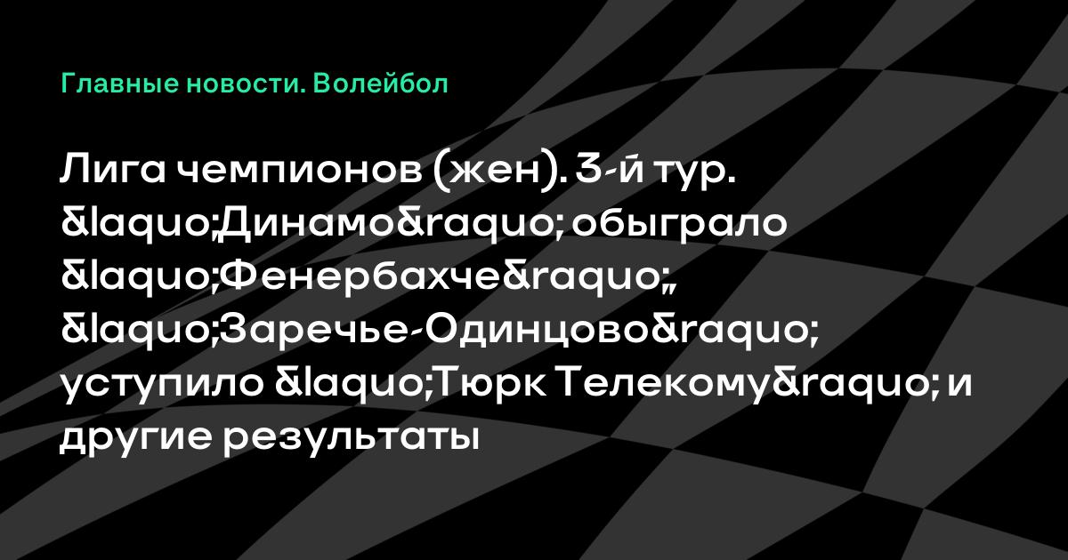 Лига чемпионов (жен). 3-й тур. «Динамо» обыграло «Фенербахче», «Заречье-Одинцово» уступило «Тюрк Телекому» и другие результаты