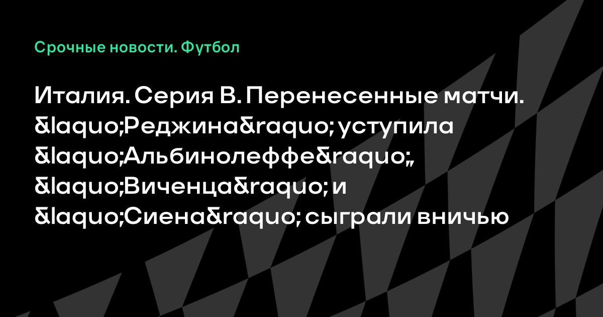 Италия. Серия В. Перенесенные матчи. «Реджина» уступила «Альбинолеффе», «Виченца» и «Сиена» сыграли вничью