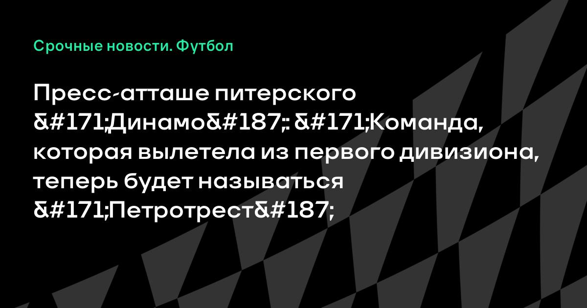 Пресс-атташе питерского «Динамо»: «Команда, которая вылетела из первого дивизиона, теперь будет называться «Петротрест»