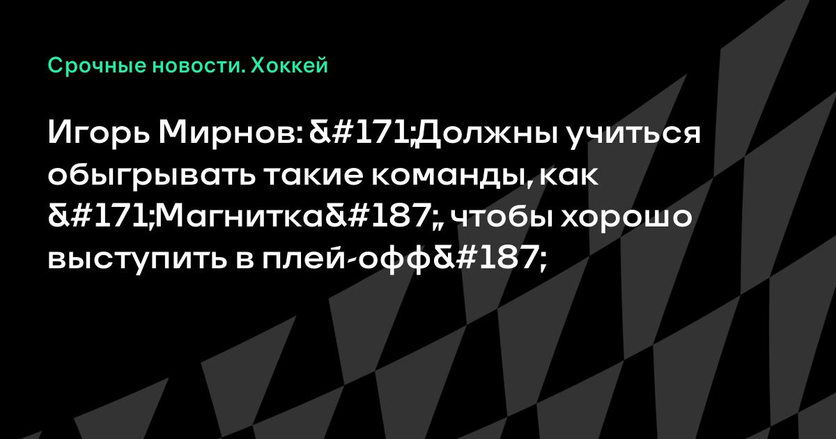 Игорь Мирнов: «Должны учиться обыгрывать такие команды, как «Магнитка», чтобы хорошо выступить в плей-офф»