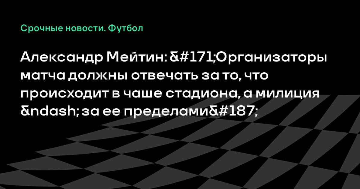 У нас на сегодня нет закона об обеспечении правопорядка и общественной безопасности во время проведения спортивных и других массовых мероприятий. В связи с этим возникает масса проблем. Клубы не отвечают, например, за досмотр болельщиков, а наказывают за пронос на трибуны пиротехники именно их. Организаторы матча должны отвечать за то, что происходит в чаше стадиона, а милиция за ее пределами», цитирует Мейтина «Спорт-Экспресс».