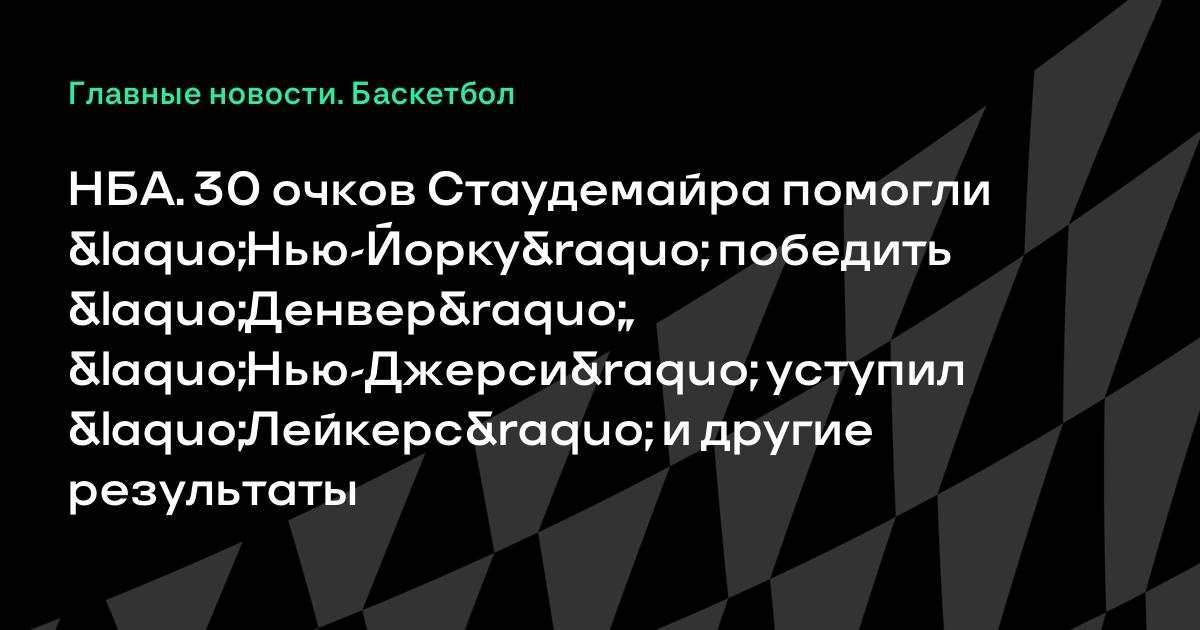 НБА. 30 очков Стаудемайра помогли «Нью-Йорку» победить «Денвер», «Нью-Джерси» уступил «Лейкерс» и другие результаты