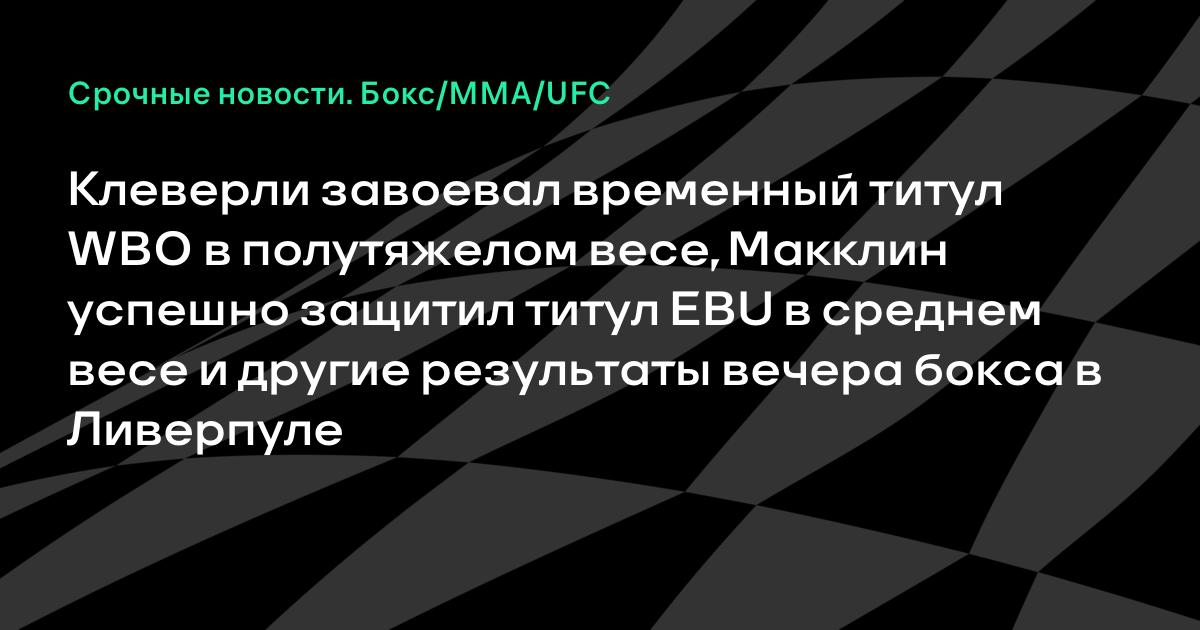 Клеверли завоевал временный титул WBO в полутяжелом весе, Макклин успешно защитил титул EBU в среднем весе и другие результаты вечера бокса в Ливерпуле