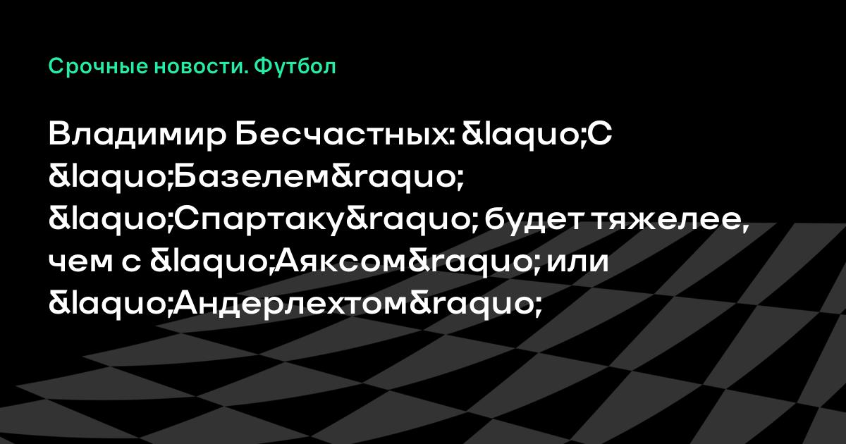 Бывший нападающий московского «Спартака» и сборной России Владимир Бесчастных прокомментировал итоги жеребьевки плей-офф Лиги Европы, отметив, что с «Базелем» красно-белым придется тяжелее, чем на следующей стадии в случае успеха в противостоянии с клубом из Швейцарии.
