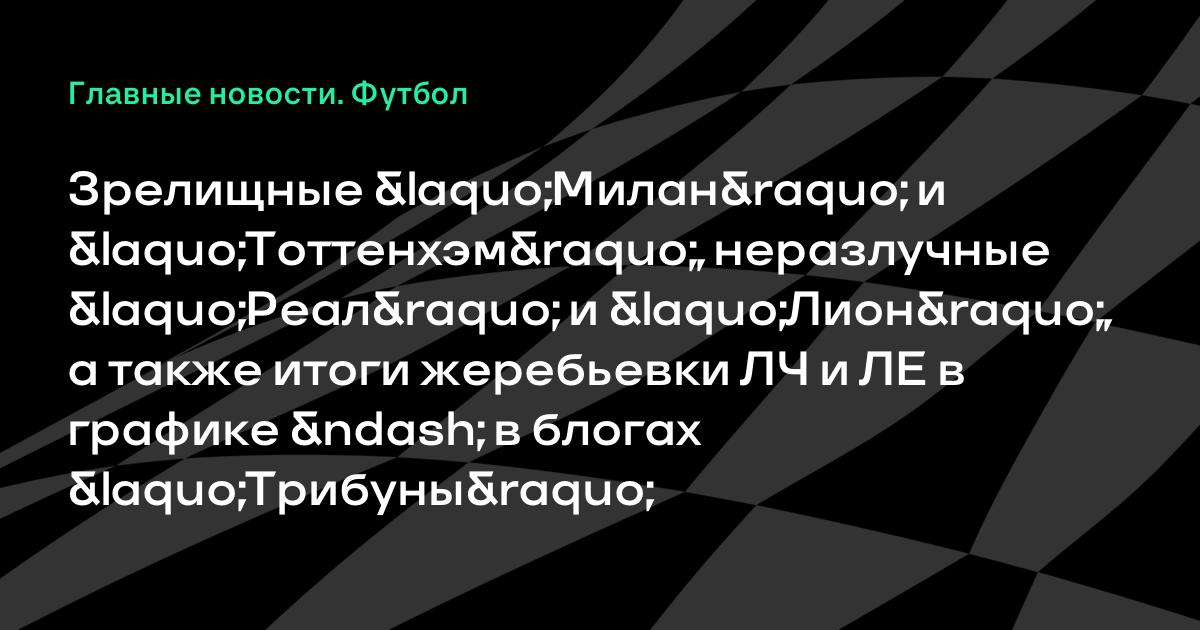 Зрелищные «Милан» и «Тоттенхэм», неразлучные «Реал» и «Лион», а также итоги жеребьевки ЛЧ и ЛЕ в графике – в блогах «Трибуны»