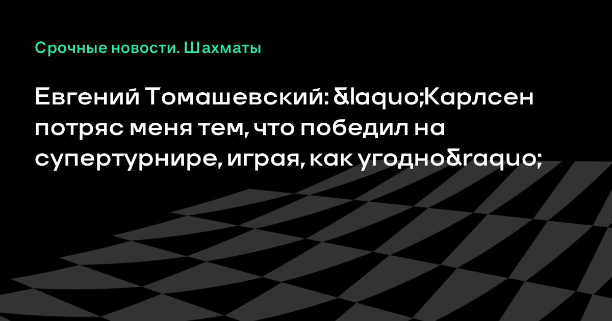 Понятно, что Карлсен, в силу своего таланта, своей подготовки, суперзвездного положения, может себе позволить больше, чем другие. Безусловно, он меня потряс тем, что выиграл турнир такого уровня, играя, по большому счету, как угодно. Фактически Карлсен проиграл три партии проиграл две и должен был проиграть третью, играл, что угодно, играл слабо для своего уровня. Но, тем не менее, все равно занял первое место», рассказал Томашевский в эфире «НТВ-Плюс».