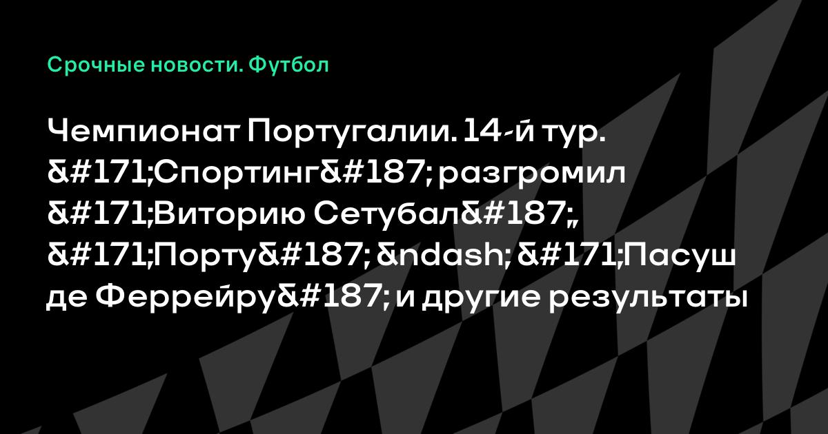 Чемпионат Португалии. 14-й тур. «Спортинг» разгромил «Виторию Сетубал», «Порту» – «Пасуш де Феррейру» и другие результаты