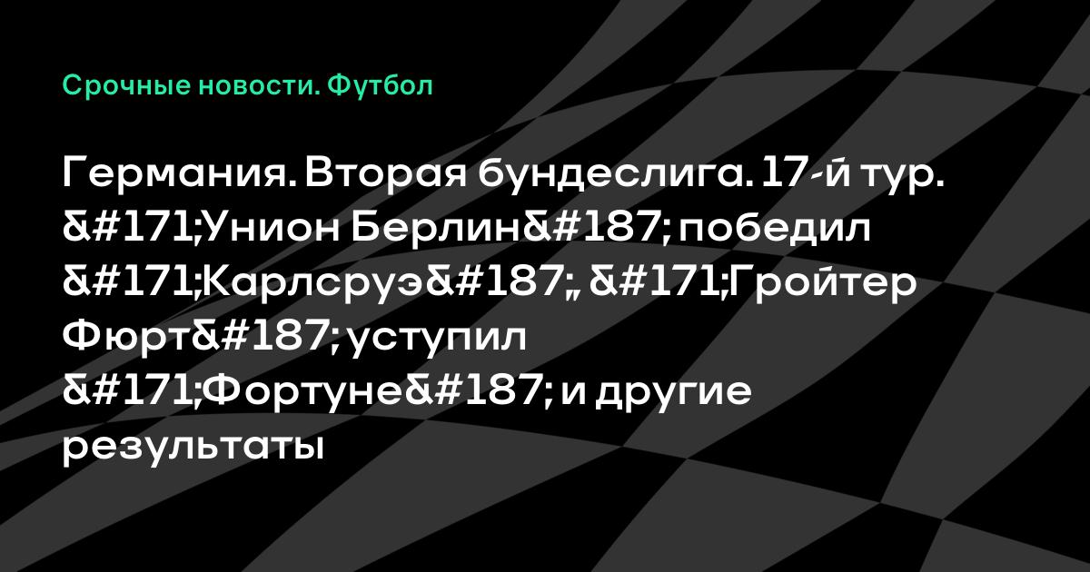 Германия. Вторая бундеслига. 17-й тур. «Унион Берлин» победил «Карлсруэ», «Гройтер Фюрт» уступил «Фортуне» и другие результаты