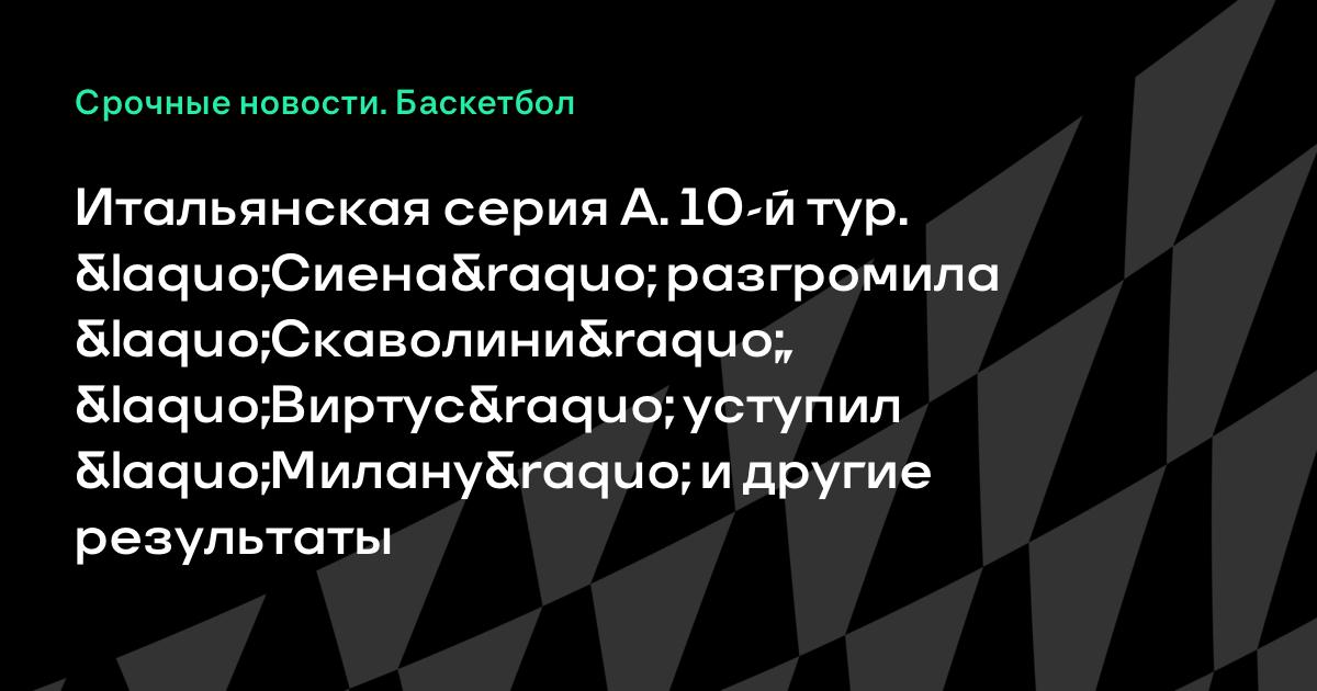 Итальянская серия А. 10-й тур. «Сиена» разгромила «Скаволини», «Виртус» уступил «Милану» и другие результаты
