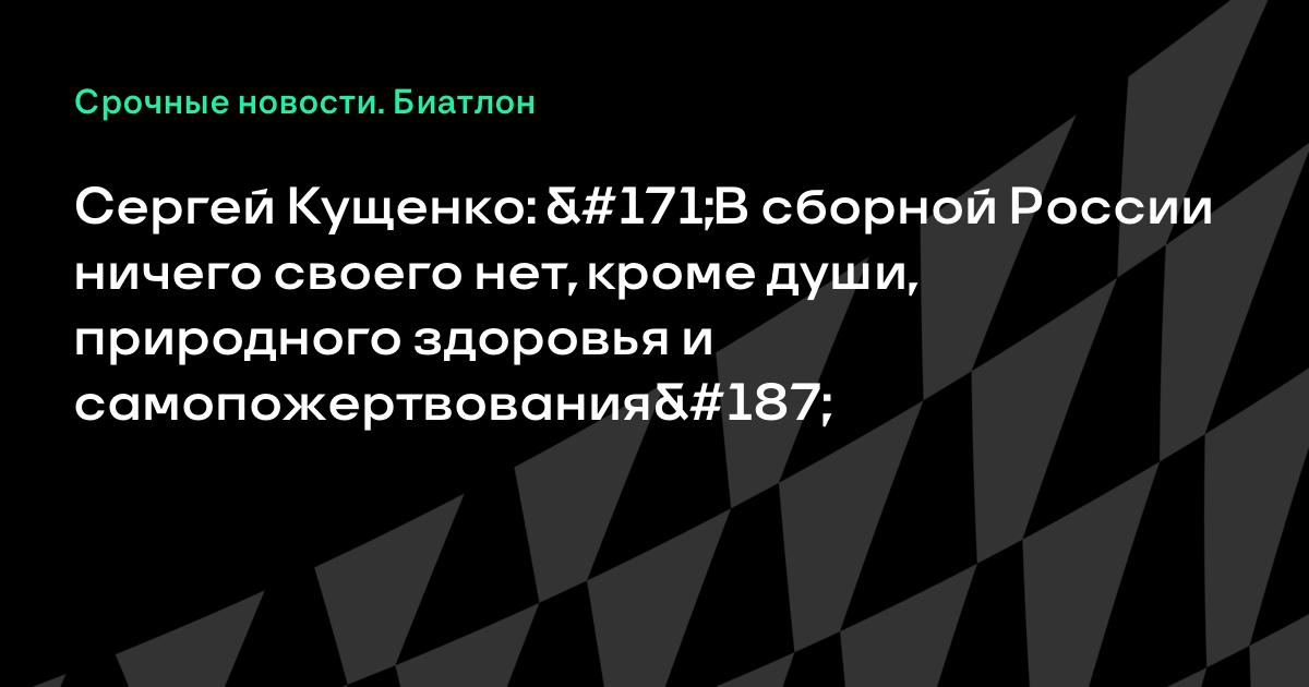 Никакой вины не признаю, пока не закончен сезон и не будет сделан анализ. Этот экспериментальный путь мы выбрали сами, и нам его предстоит пройти. Может, и не нужно повторяться, но все равно скажу: у нас вообще ничего своего нет. Ни мазей, ни лыж, ни парафинов, ни экипировки. Ничего, кроме российской души, природного здоровья и самопожертвования. И тем не менее мы сражаемся. Пора привыкать к тому, что российский биатлон не единственный лидер на мировой арене. Сейчас мы находимся по крайней мере в тройке лидеров. И снизу, замечу, активно стучат, ломятся на нашу территорию. Готовят пусть даже одного спортсмена – но и тот уже нам соперник», – рассказал Кущенко в интервью «Спорт-Экпрессу».
