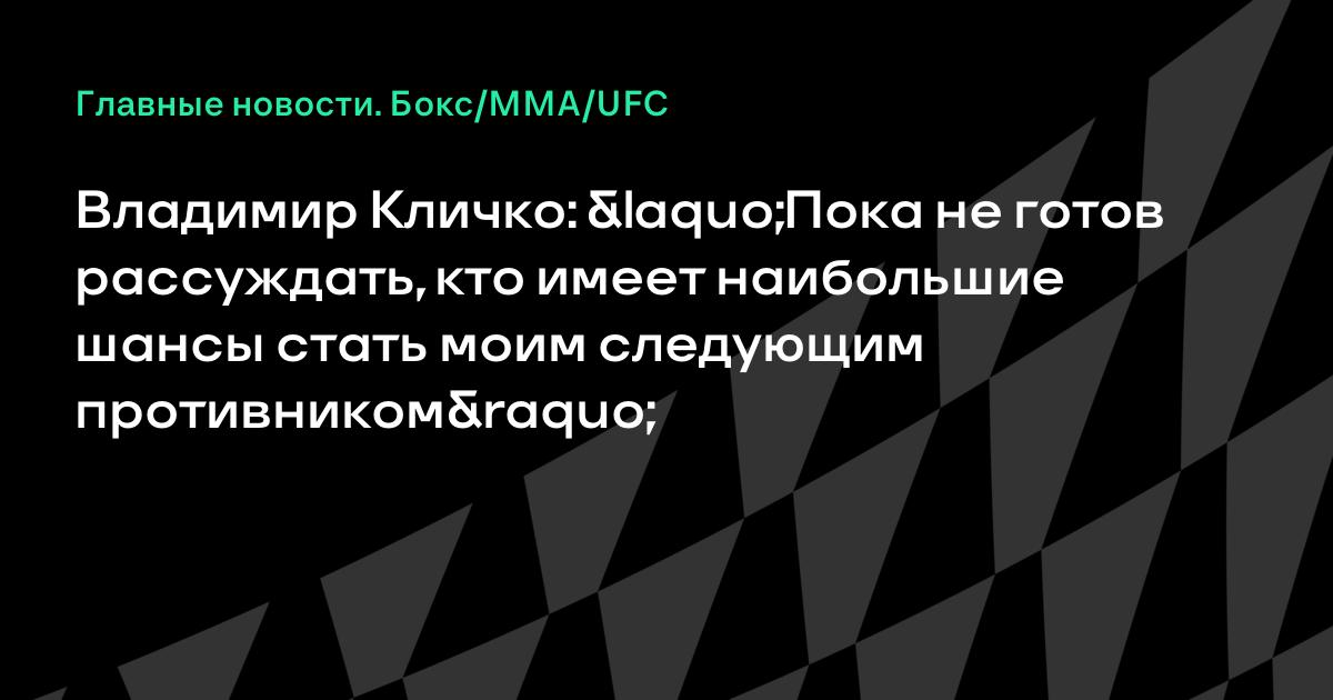 «Давайте не опережать события. Вначале мне надо оправиться после травмы. И только потом можно будет рассуждать, кто имеет наибольшие шансы стать моим следующим противником».