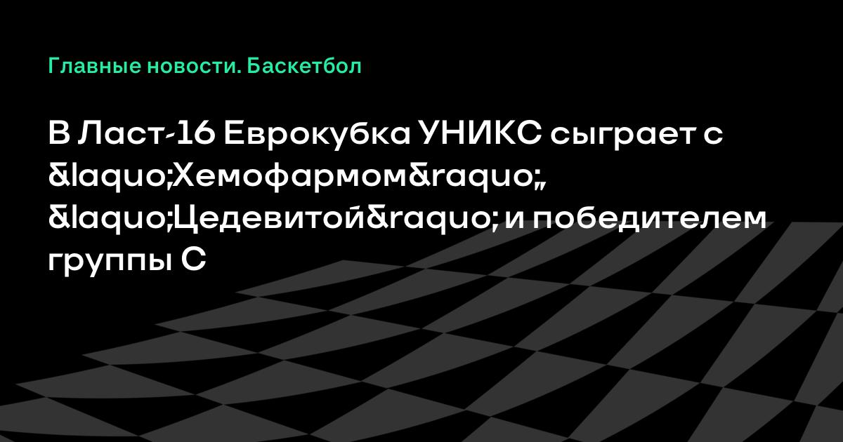 В Ласт-16 Еврокубка УНИКС сыграет с «Хемофармом», «Цедевитой» и победителем группы С