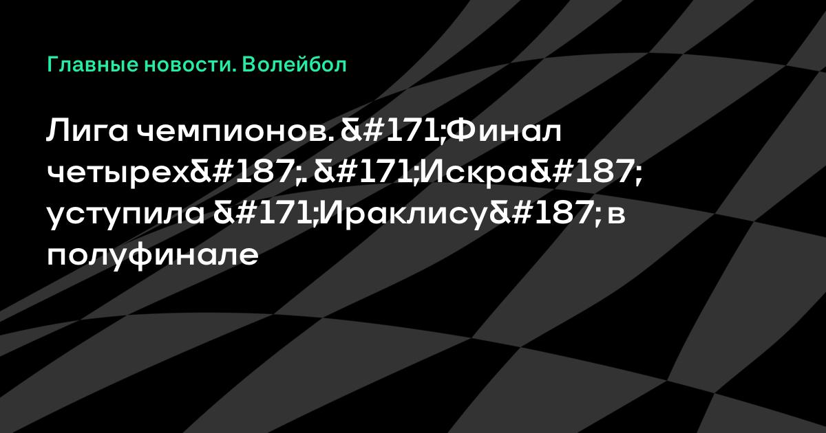 4 апреля 2009, 20:40 Лига чемпионов. «Финал четырех». «Искра» уступила «Ираклису» в полуфинале Лига чемпионов Финал четырех Прага, Чехия Мужчины 1/2 финала Искра Россия Ираклис Греция 1-3 (25:19, 22:25, 23:25, 23:25) Любэ Банка Италия Трентино Италия 0-3 (21:25, 19:25, 23:25) Волейбол Искра Ираклис Лига чемпионов результаты