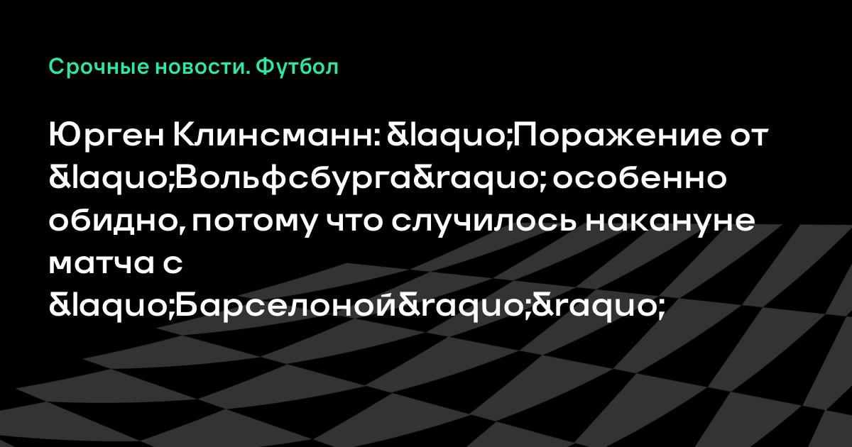 Юрген Клинсманн: «Поражение от «Вольфсбурга» особенно обидно, потому что случилось накануне матча с «Барселоной»»