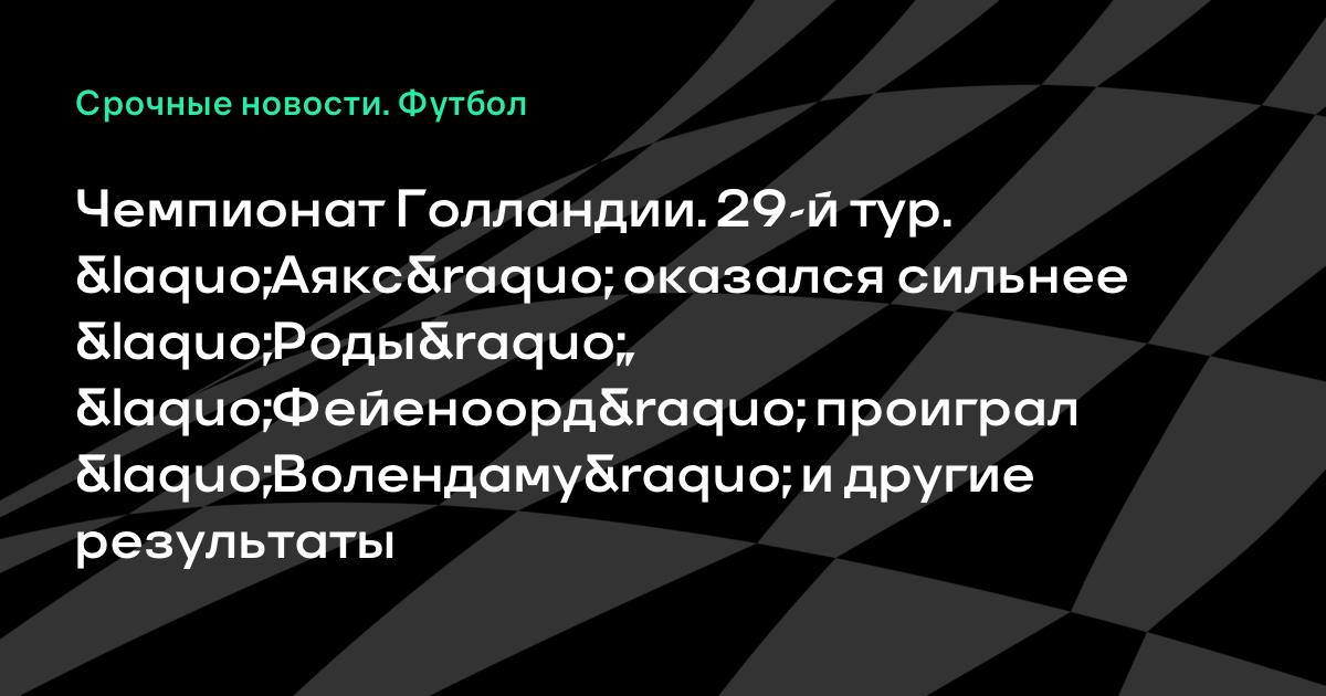 Чемпионат Голландии. 29-й тур. «Аякс» оказался сильнее «Роды», «Фейеноорд» проиграл «Волендаму» и другие результаты