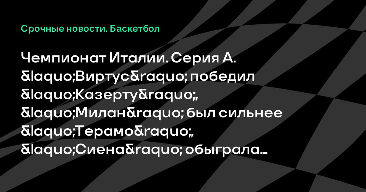 Чемпионат Италии. Серия А. «Виртус» победил «Казерту», «Милан» был сильнее «Терамо», «Сиена» обыграла «Риети» и другие результаты