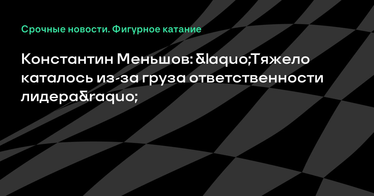 Конечно, итоговым результатом я очень доволен и рад, но хотелось показать прокат получше. Знаю, что способен на большее. Обидно, ведь на тренировках в последнее время мне удавалось чисто исполнять и короткую, и произвольную программы», приводит слова Меньшова «Спорт-экспресс».
