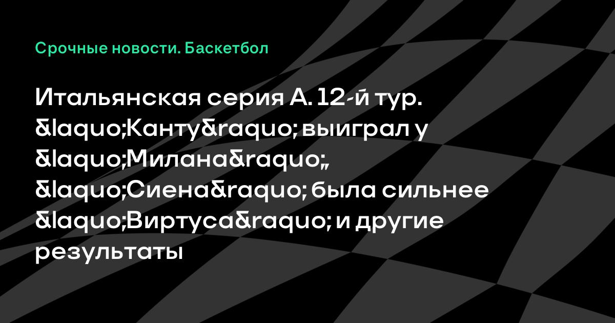 Итальянская серия А. 12-й тур. «Канту» выиграл у «Милана», «Сиена» была сильнее «Виртуса» и другие результаты