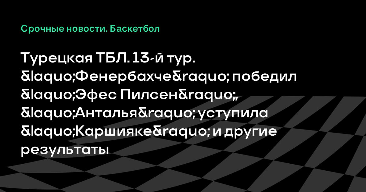 Турецкая ТБЛ. 13-й тур. «Фенербахче» победил «Эфес Пилсен», «Анталья» уступила «Каршияке» и другие результаты
