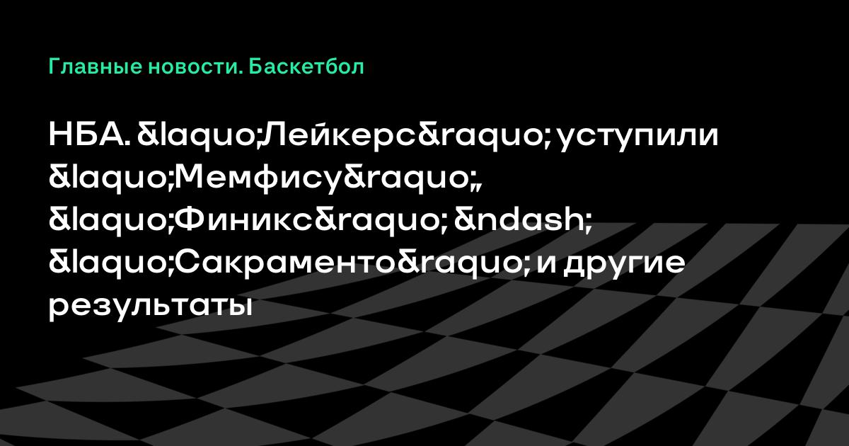 НБА. «Лейкерс» уступили «Мемфису», «Финикс» – «Сакраменто» и другие результаты