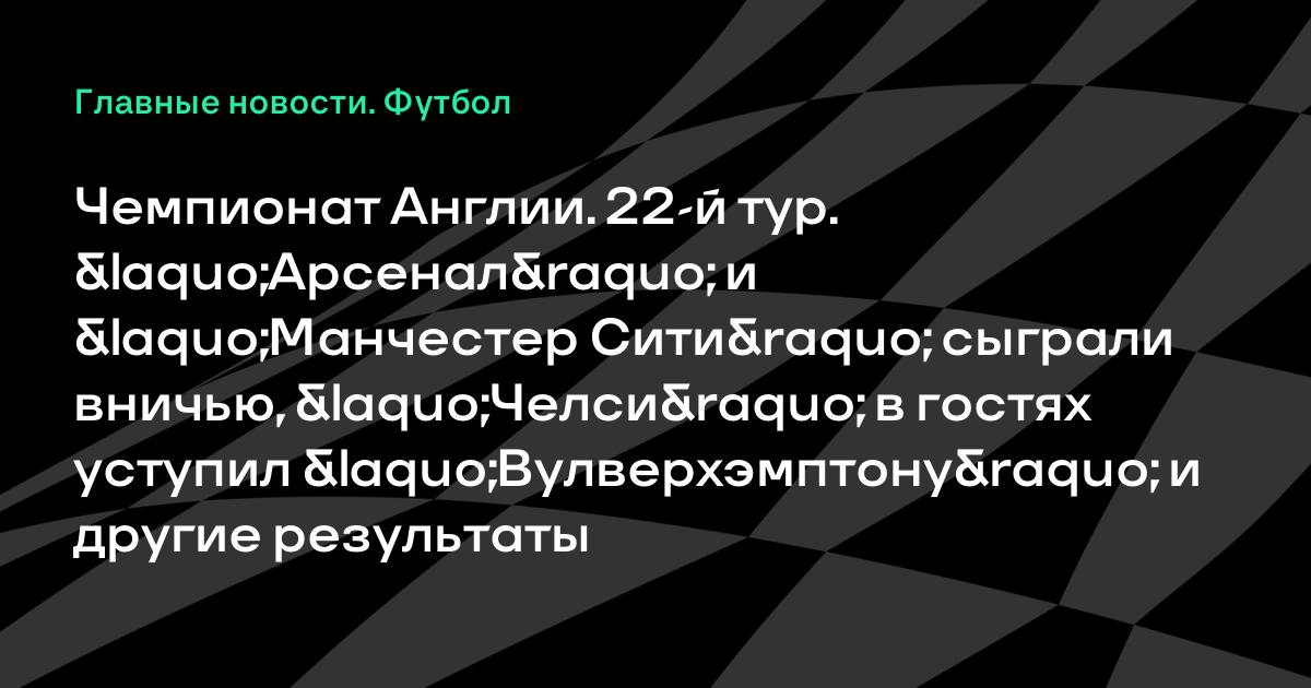 Чемпионат Англии. 22-й тур. «Арсенал» и «Манчестер Сити» сыграли вничью, «Челси» в гостях уступил «Вулверхэмптону» и другие результаты