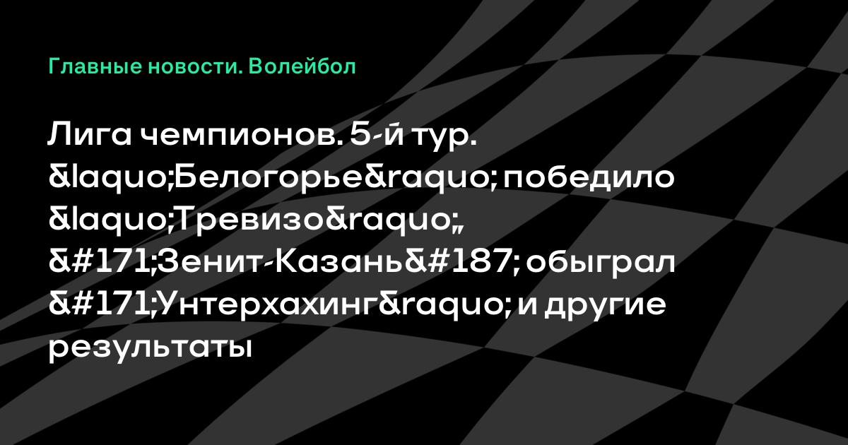 Лига чемпионов. 5-й тур. «Белогорье» победило «Тревизо», «Зенит-Казань» обыграл «Унтерхахинг» и другие результаты