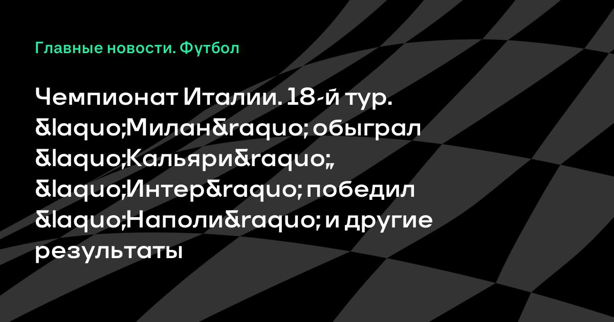 Чемпионат Италии. 18-й тур. «Милан» обыграл «Кальяри», «Интер» победил «Наполи» и другие результаты