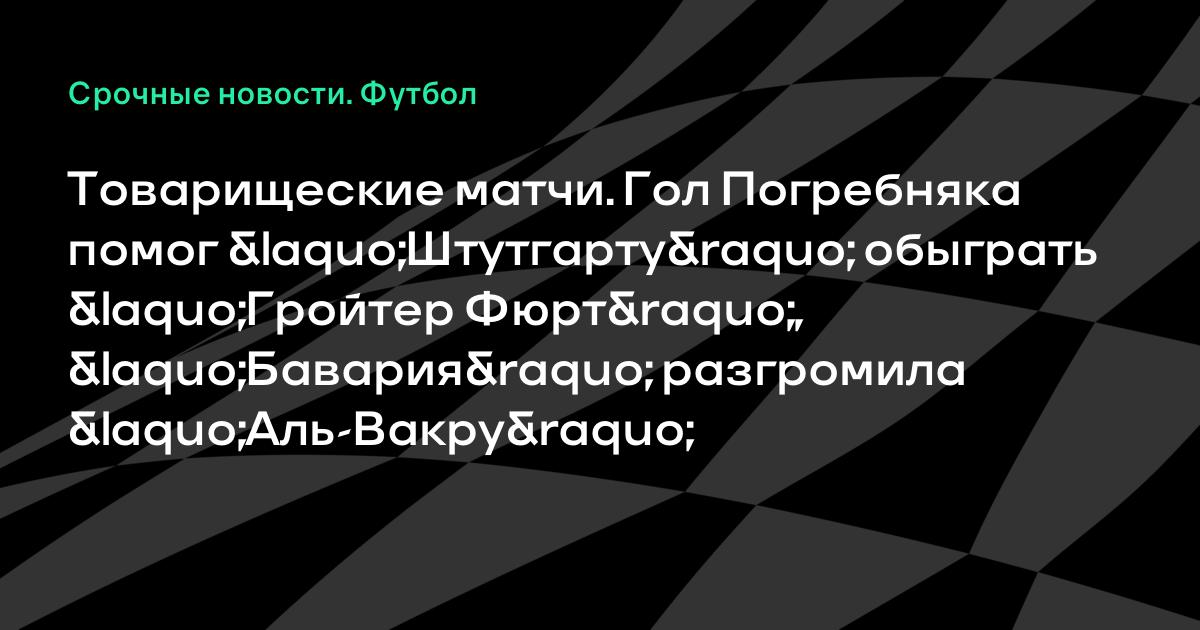 Товарищеские матчи. Гол Погребняка помог «Штутгарту» обыграть «Гройтер Фюрт», «Бавария» разгромила «Аль-Вакру»