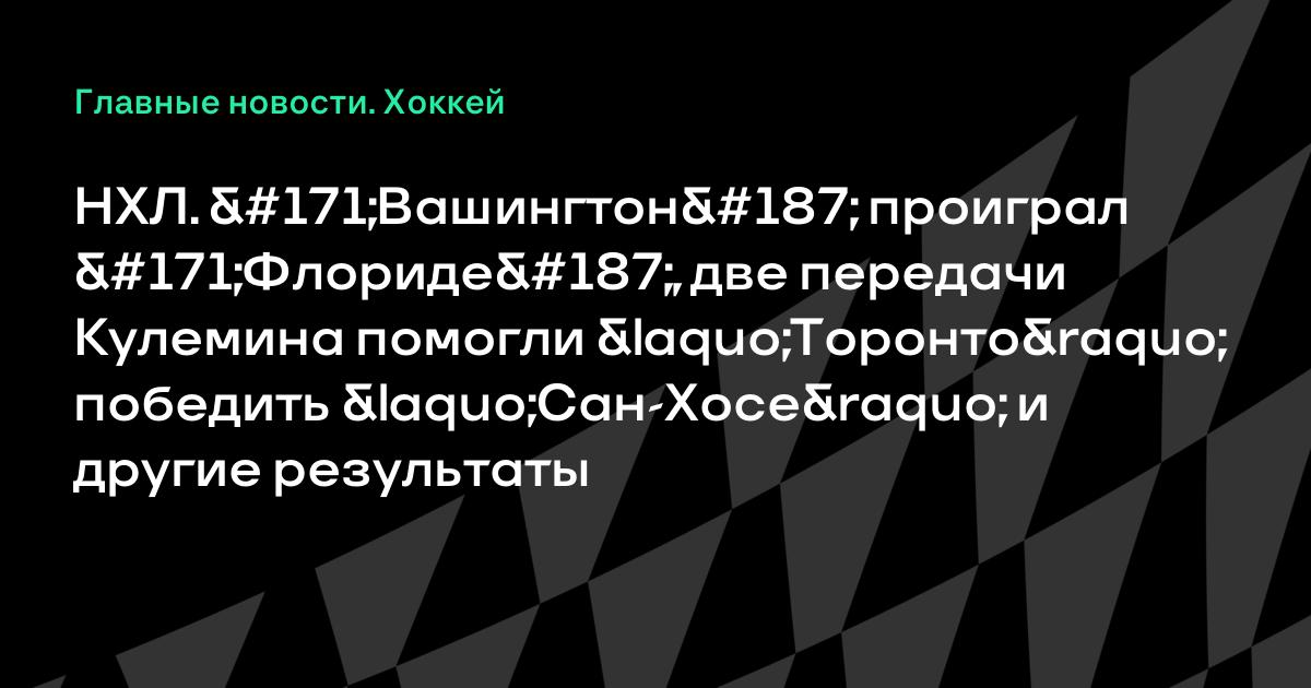 НХЛ. «Вашингтон» проиграл «Флориде», две передачи Кулемина помогли «Торонто» победить «Сан-Хосе» и другие результаты