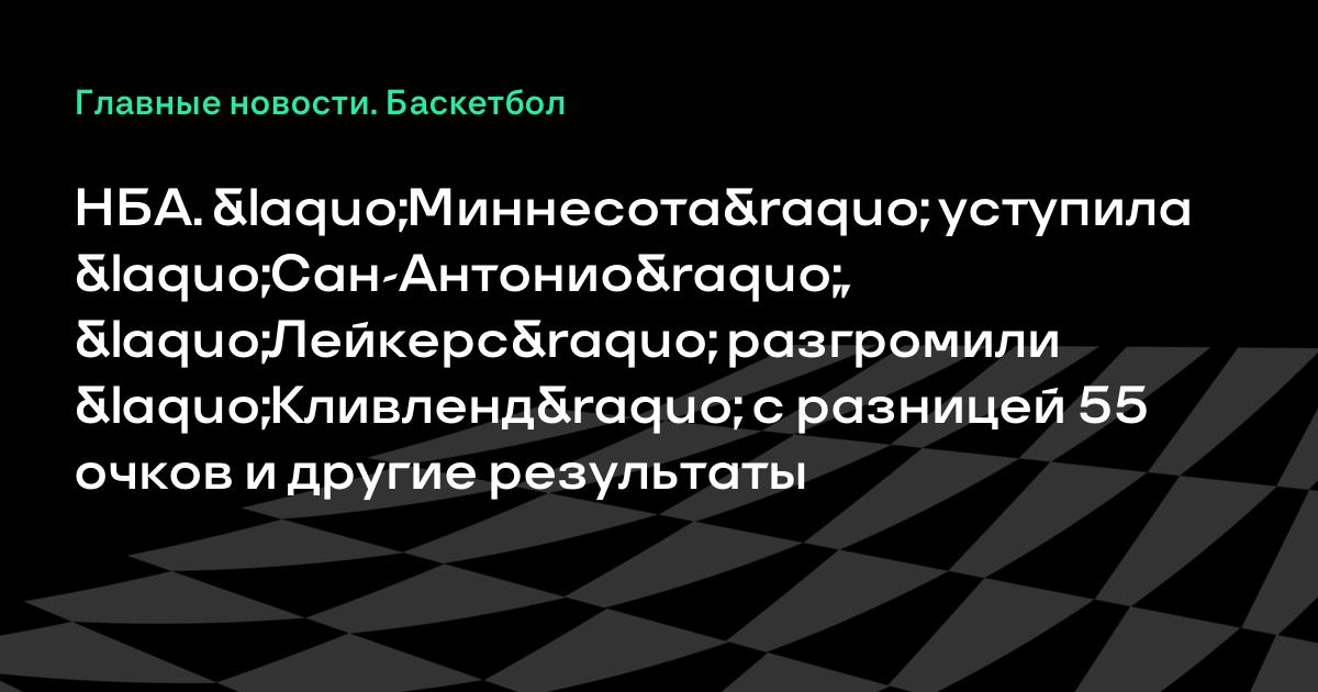 НБА. «Миннесота» уступила «Сан-Антонио», «Лейкерс» разгромили «Кливленд» с разницей 55 очков и другие результаты