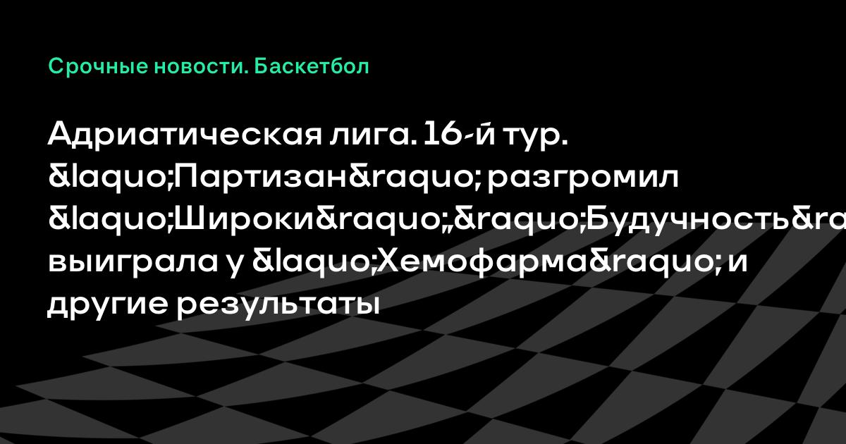 Адриатическая лига. 16-й тур. «Партизан» разгромил «Широки»,»Будучность» выиграла у «Хемофарма» и другие результаты