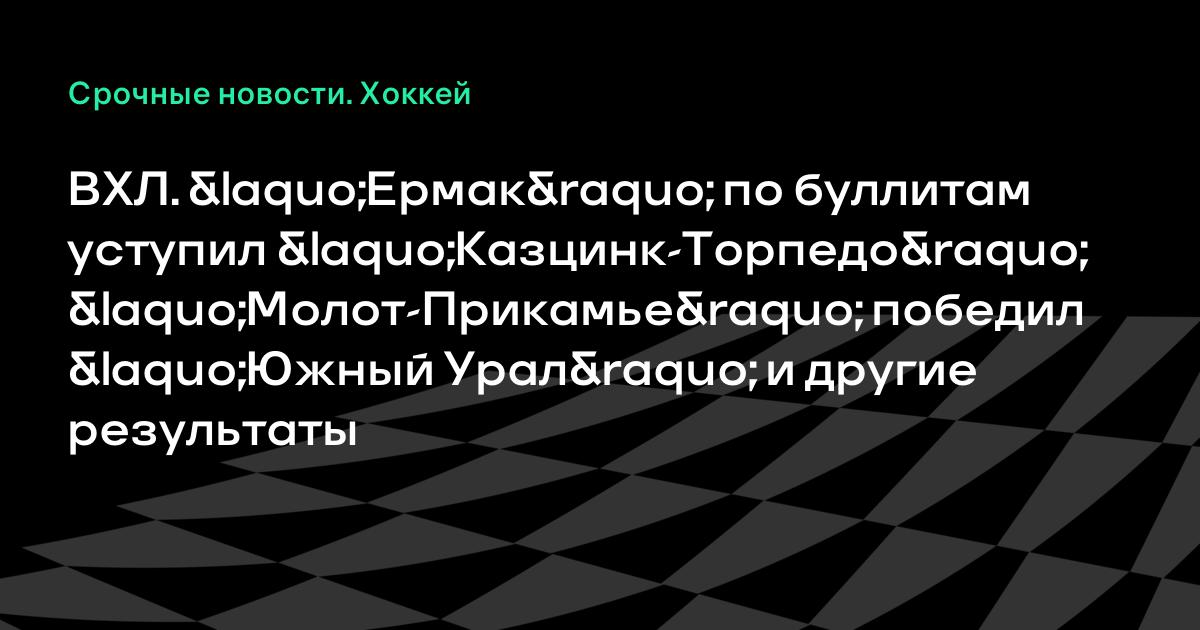 ВХЛ. «Ермак» по буллитам уступил «Казцинк-Торпедо» «Молот-Прикамье» победил «Южный Урал» и другие результаты