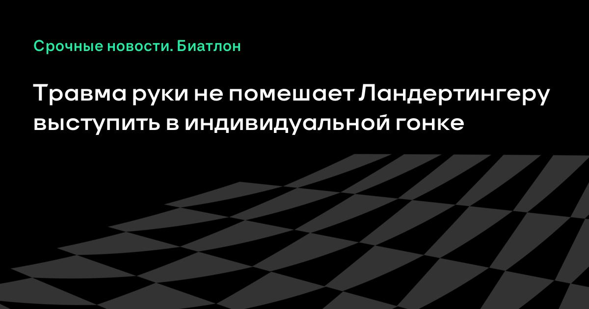 К сожалению, я буду выступать с травмой. У меня воспаление на запястье. В больнице меня осмотрели и сказали, что я «простудил» руку. Теперь там образовался отек, от которого я надеюсь избавиться как можно скорее. Стрелять не больно, но при движении рука немного побаливает. Но это не помешает мне выступить в индивидуальной гонке», рассказал Ландертингер на своем официальном сайте.